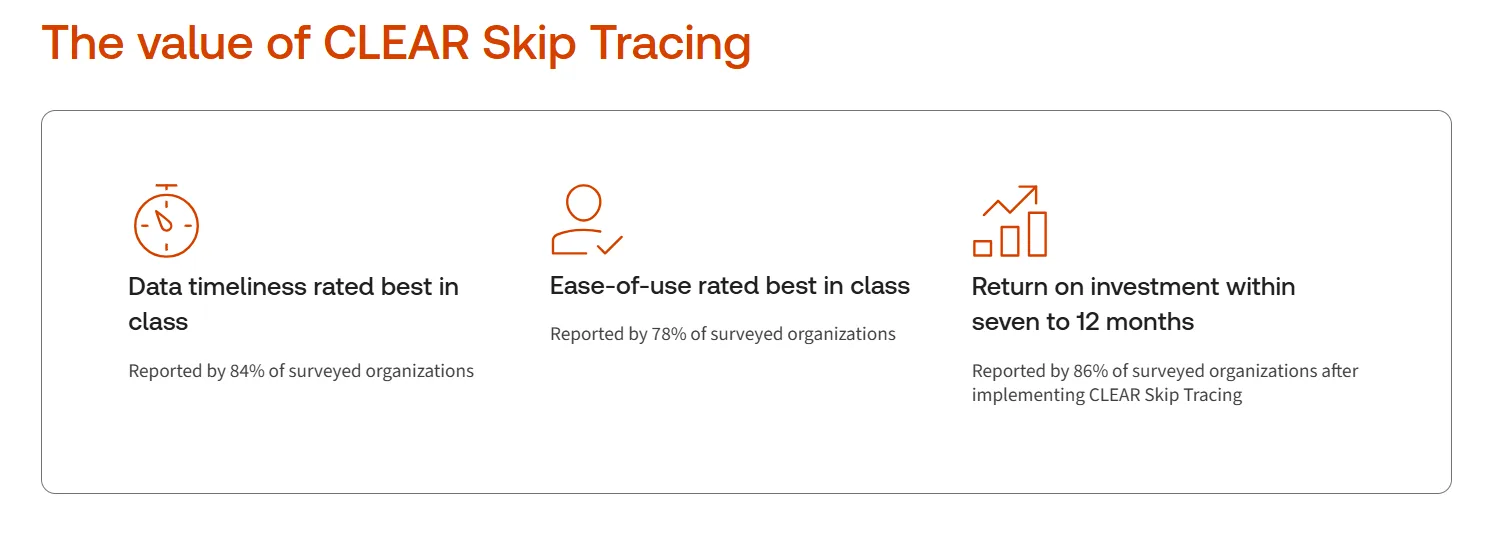 This data was obtained by UserEvidence Survey, 2025 for Thomson Reuters® CLEAR Skip Tracing