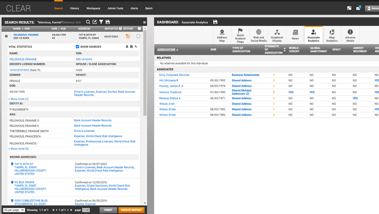 “CLEAR helps locate impossible to locate customers through property ownership and relative data”