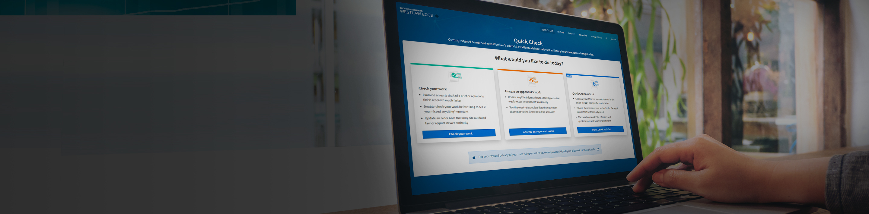 Whether it’s checking your brief, analyzing an opponent’s, or comparing multiple filings, Quick Check delivers highly relevant authority traditional research may have missed. Feel more confident before submitting your next brief by signing up for a Westlaw Precision trial today.
