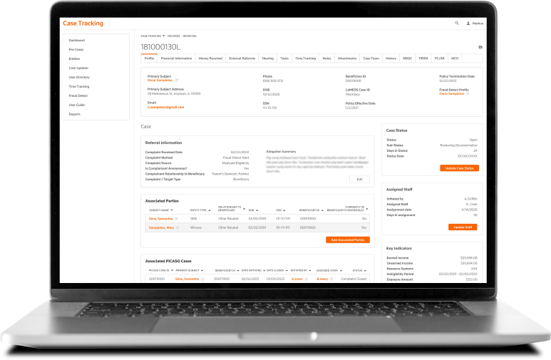 Manage referral assessments, case development, and prosecution outcome tracking to investigate and prevent fraud