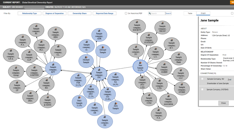 Quickly understand the ownership and control of international corporate entities to help determine the risks involved with businesses during investigations.